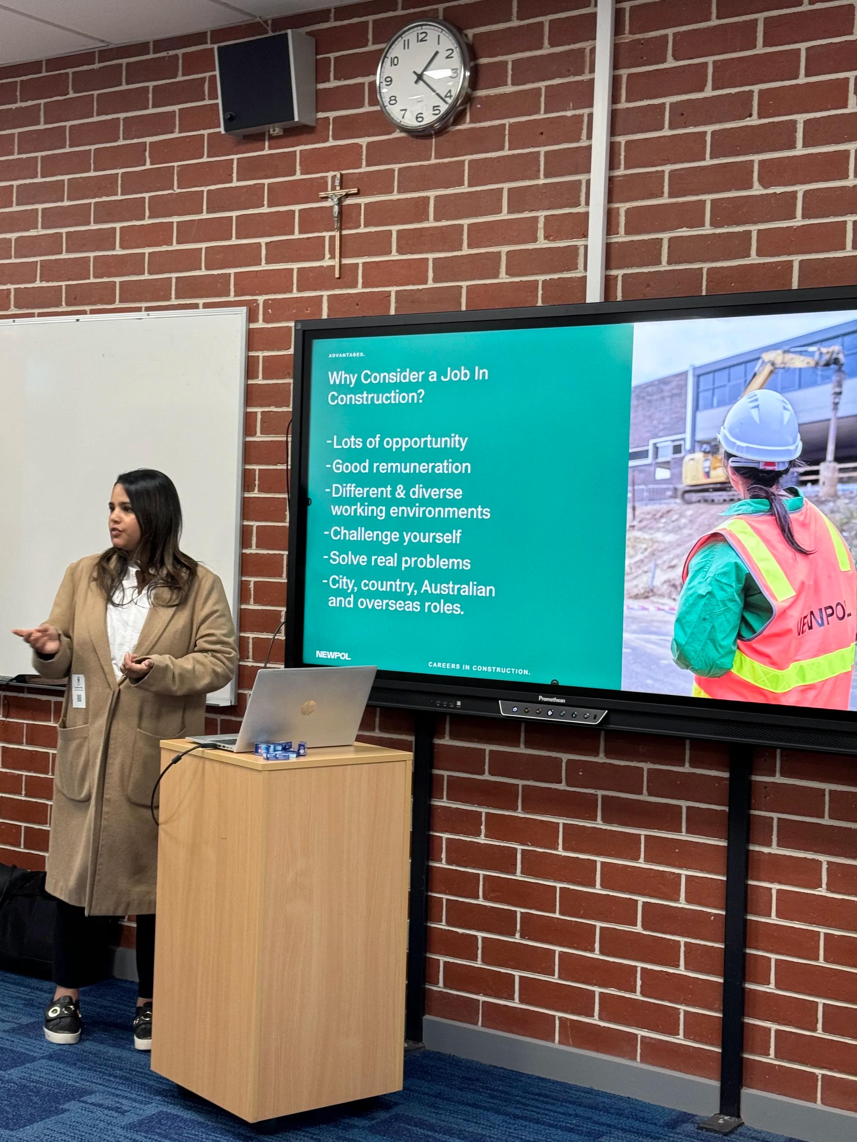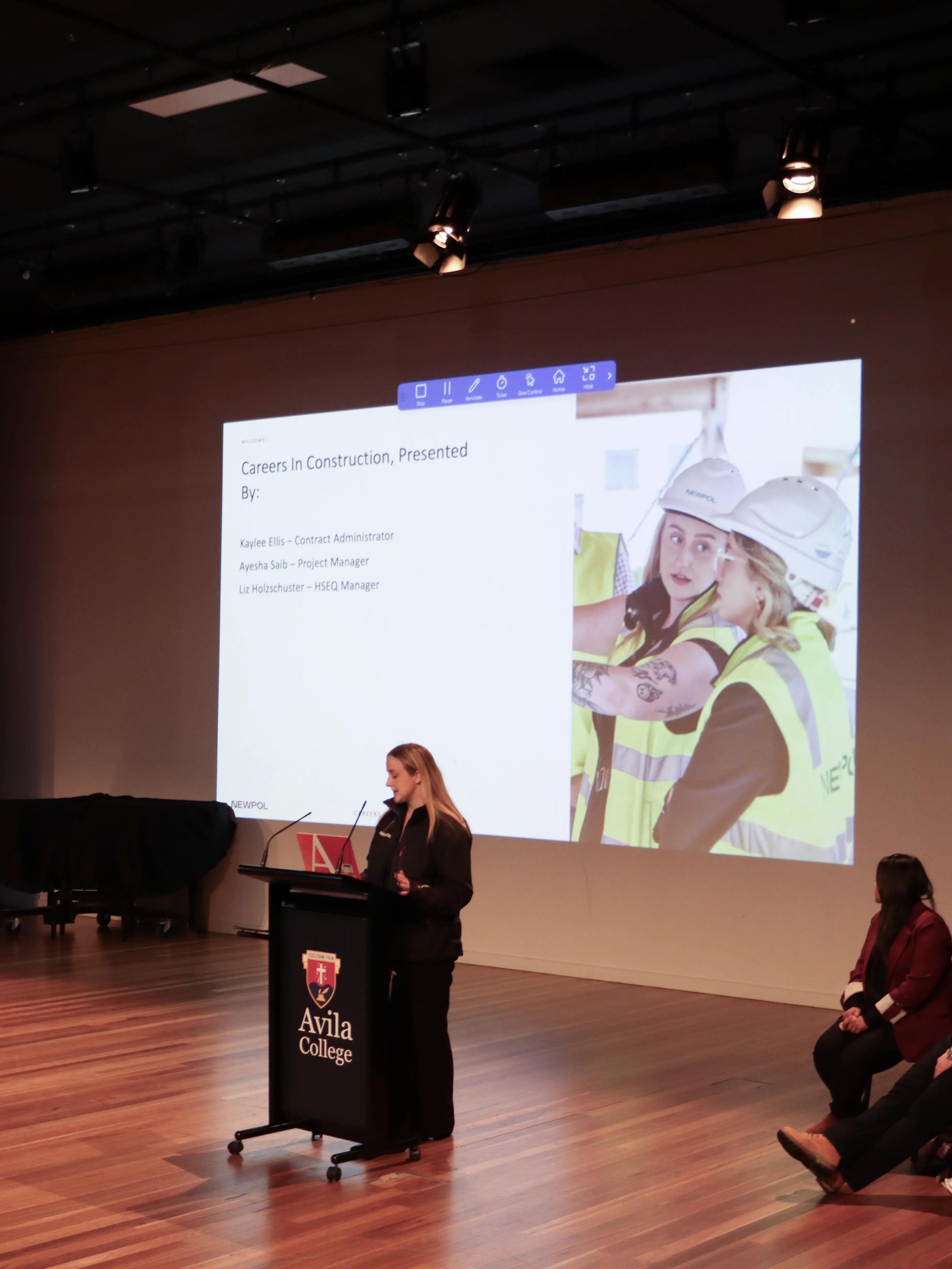 Newpol Construction was proud to visit both Avila College and Sacred Heart Girls’ College to engage with Year 9 and Year 10 students about career pathways in the construction industry.