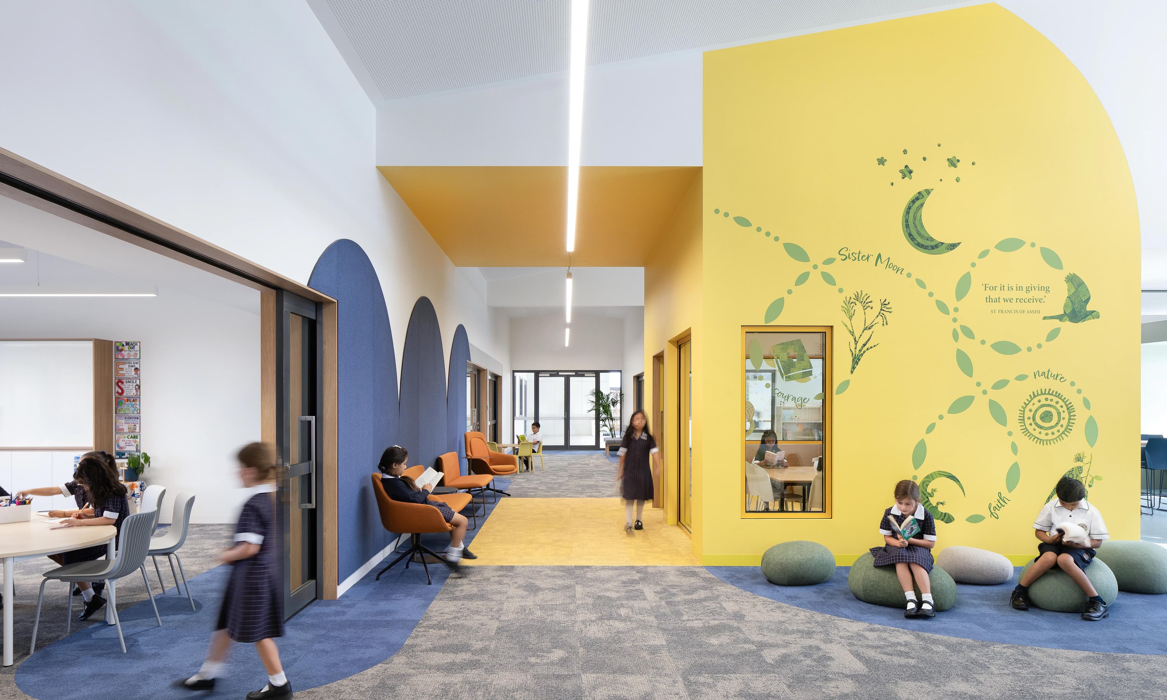Stage 1 of the Carlo Acutis CPS Masterplan delivered for Melbourne Archdiocese Catholic Schools (MACS) in collaboration with BSPN Architecture, marks a milestone for the community: a fully operational educational facility offering learning from Foundation through to Year 6. Completed ahead of the official opening in January 2025, the construction included a detailed road network, in-ground service infrastructure, vibrant learning spaces, specialist zones, inviting administrative areas, breakout rooms, intricate brickwork, landscaped grounds, play zones, and a bike store.