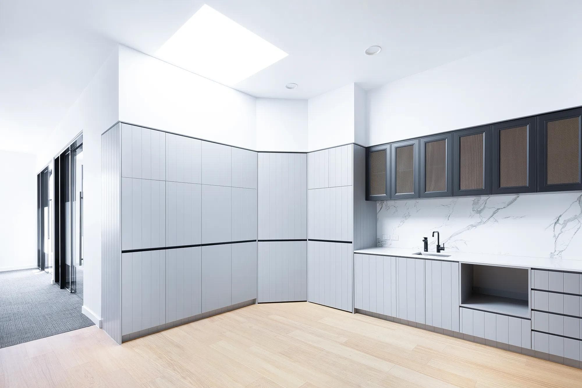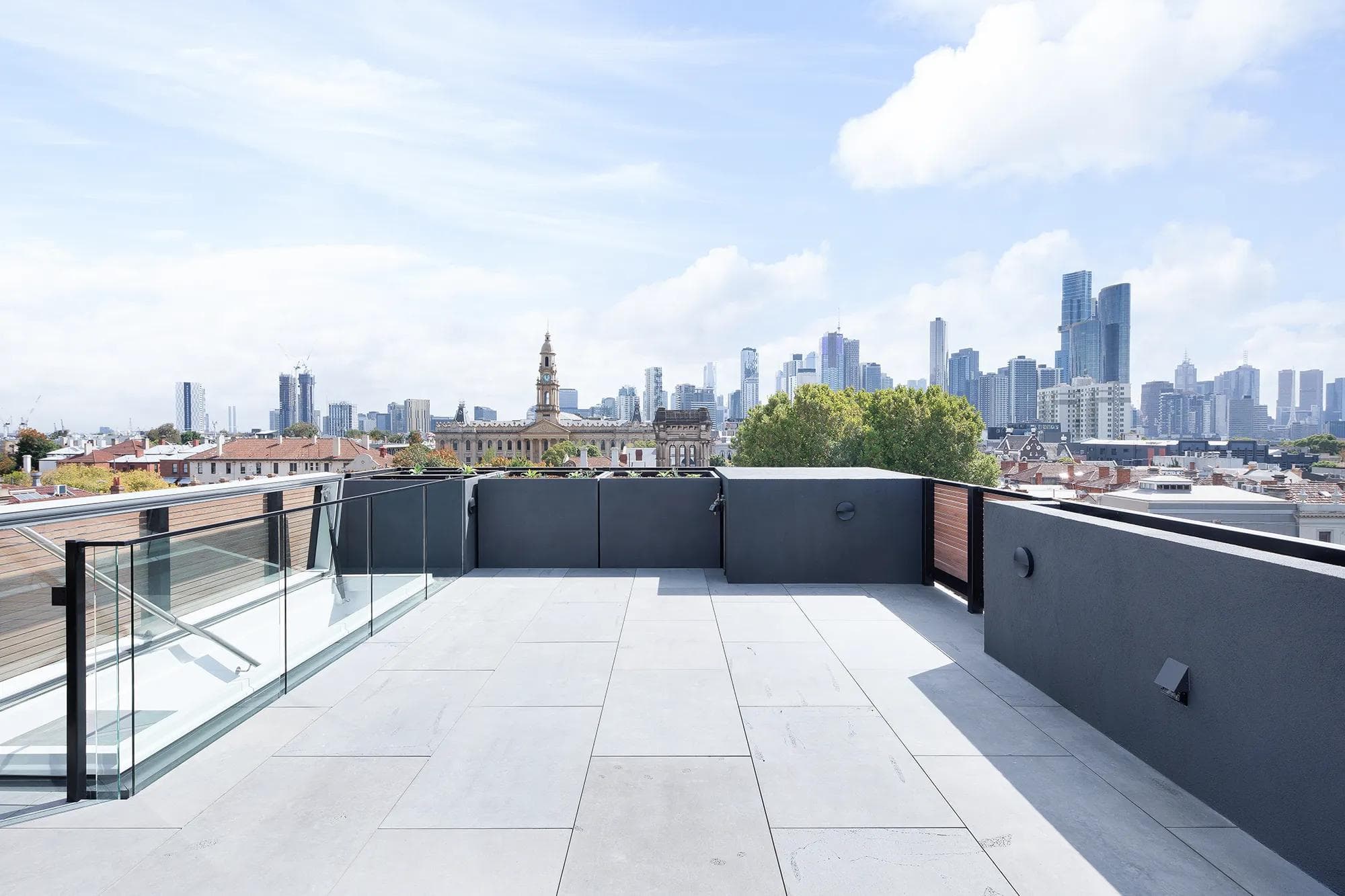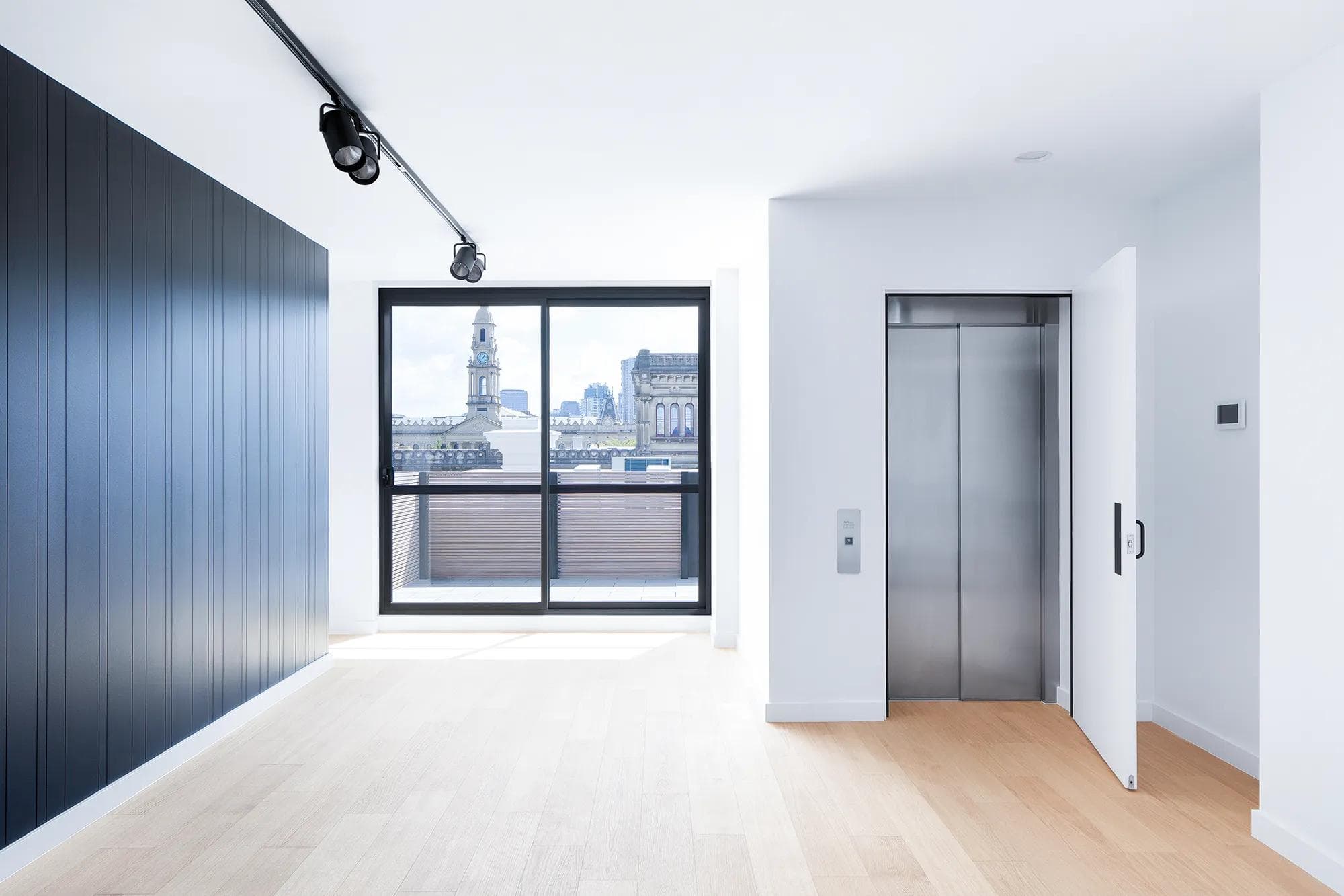 This Design & Construct contract for a mixed-use development involved the demolition of the rear of the existing building, and the construction of four levels; incorporating three office spaces, two high-end apartments, and a rooftop terrace. The building design retained the existing front and side facades, and whist introducing a new, modern structure. A motorised roof access hatch allows residents to escape to the rooftop terrace, which offers stunning views of the Melbourne city skyline. When closed, the glazed feature further serves as a skylight, flooding the penthouse apartment with natural light. The project team overcame major challenges with accessibility, as well as delays caused by COVID-19.