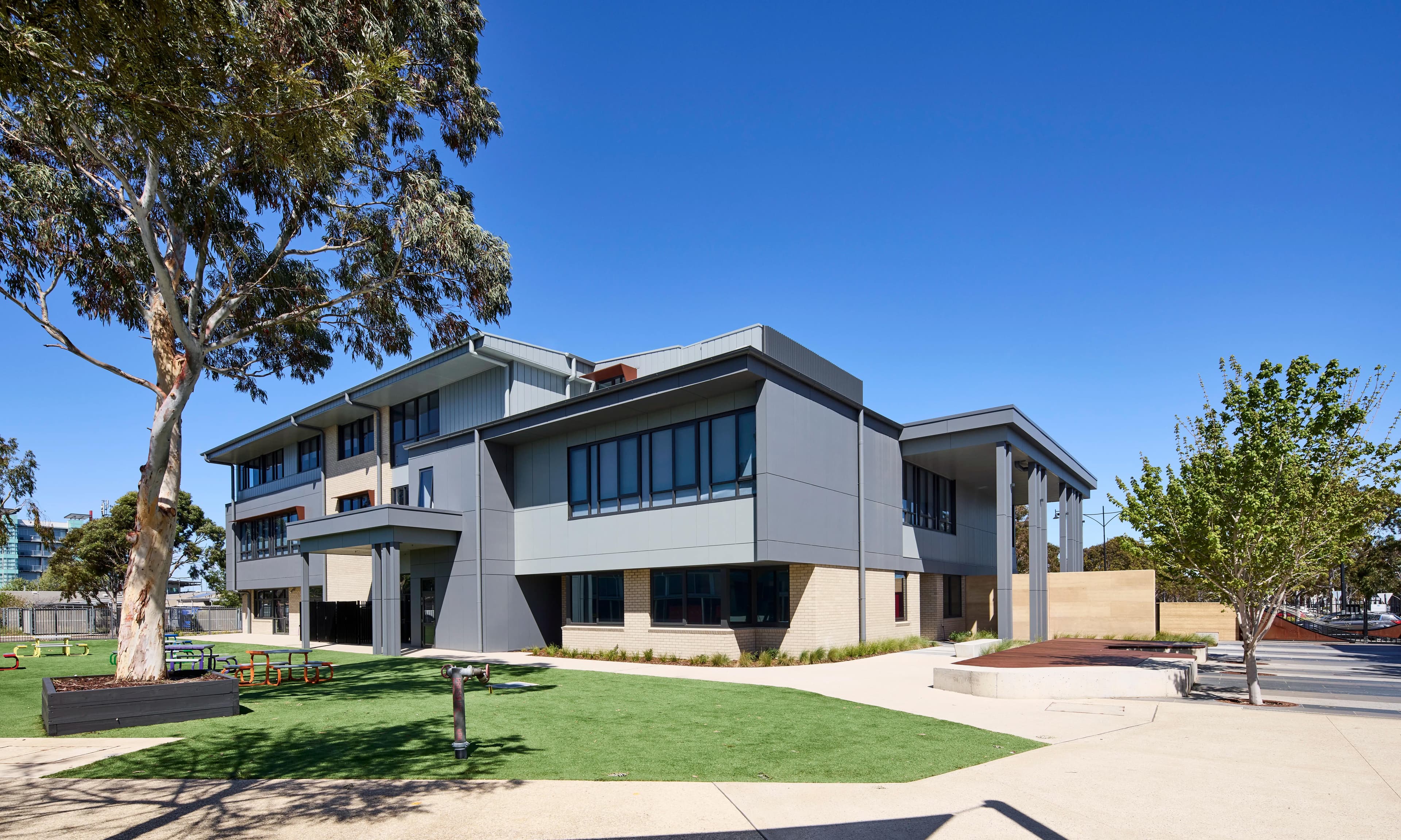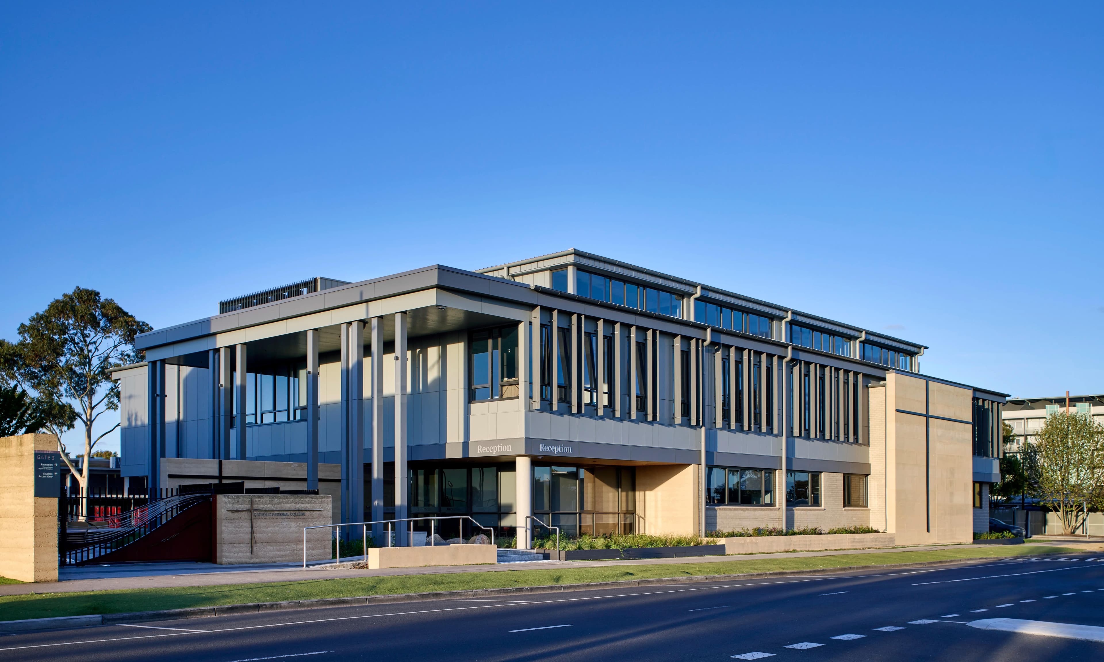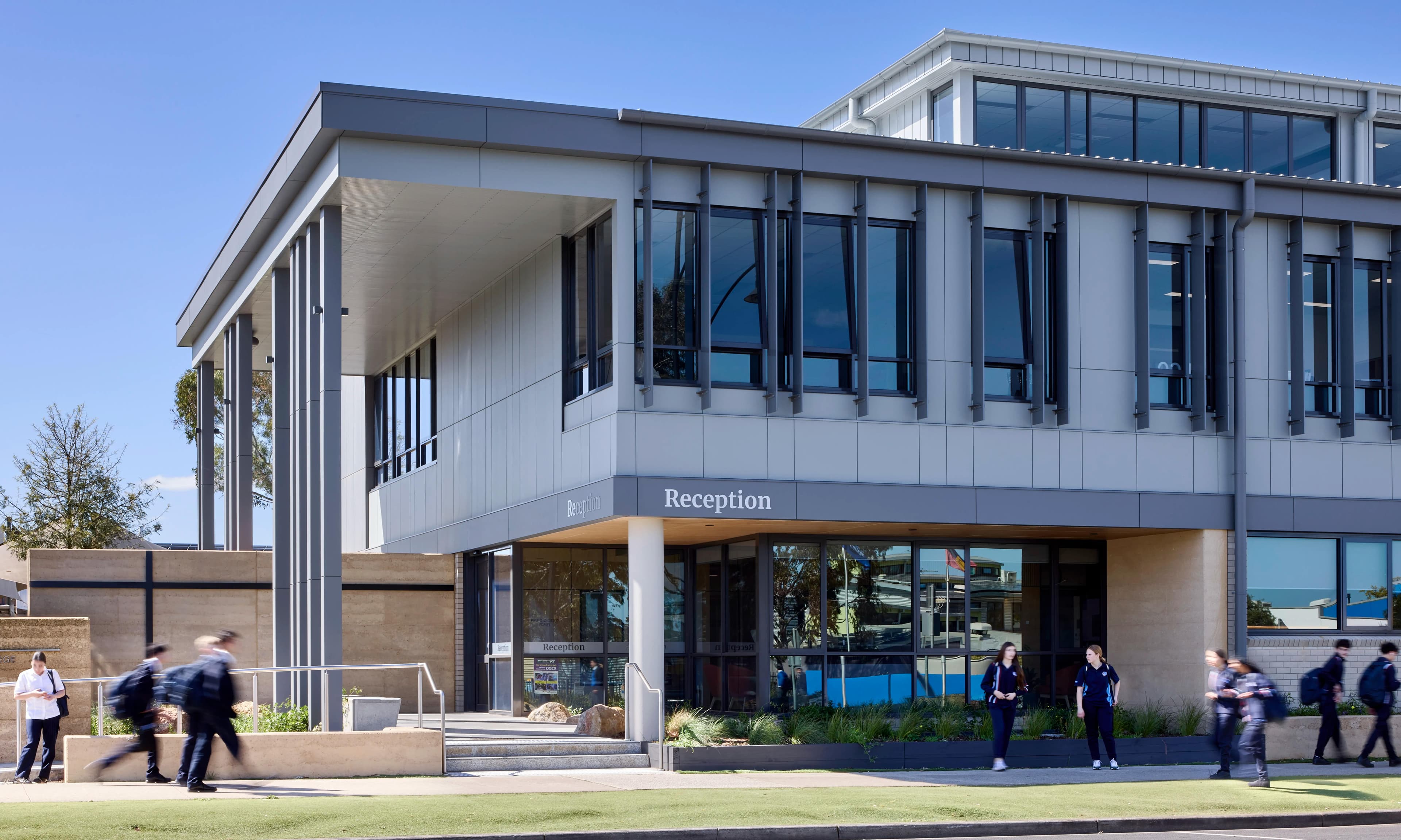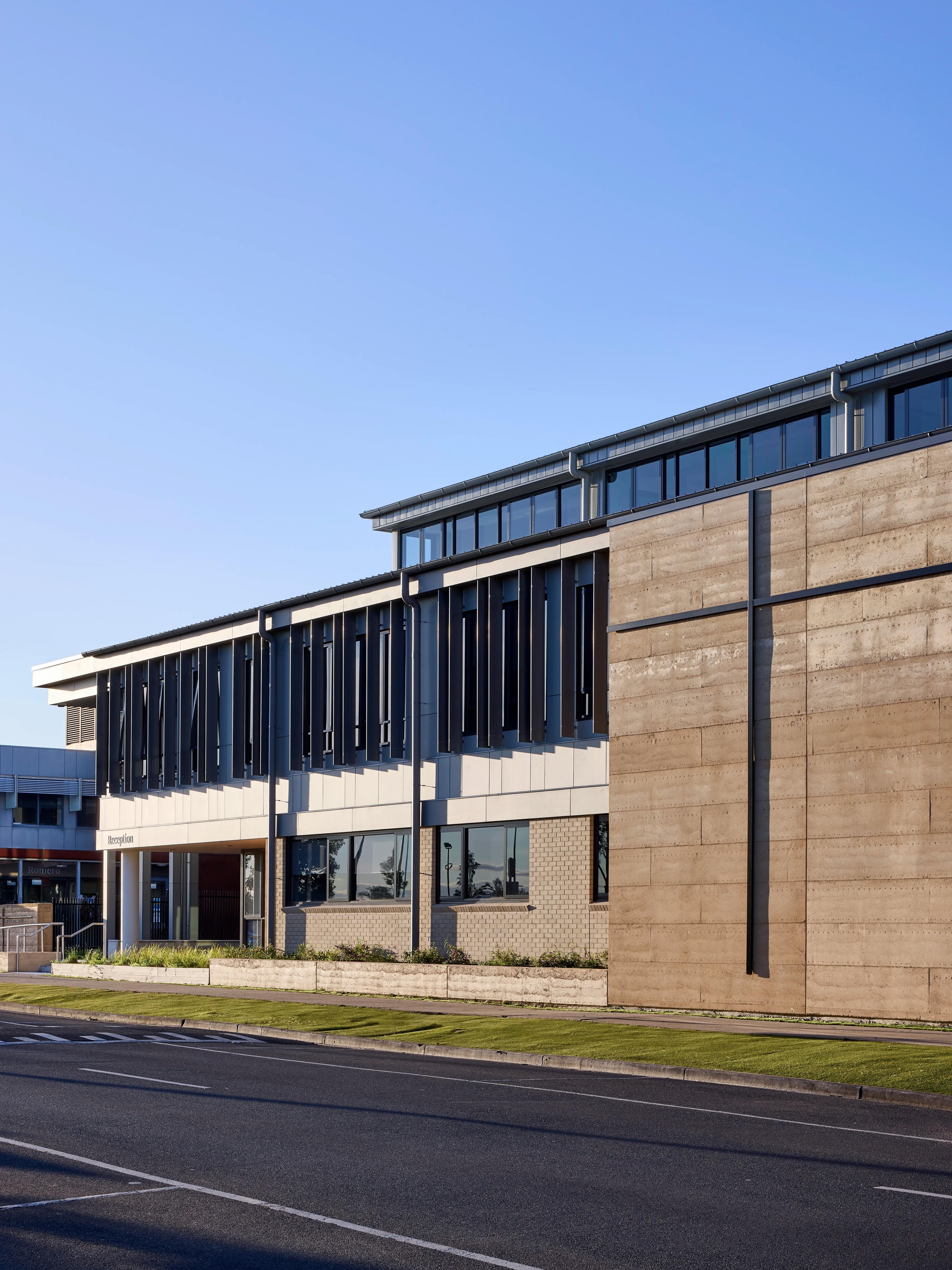 Rammed earth walls were utilised—a natural material that not only provides a distinctive architectural feature but also delivers various construction benefits, giving this cutting-edge facility a unique point of difference.