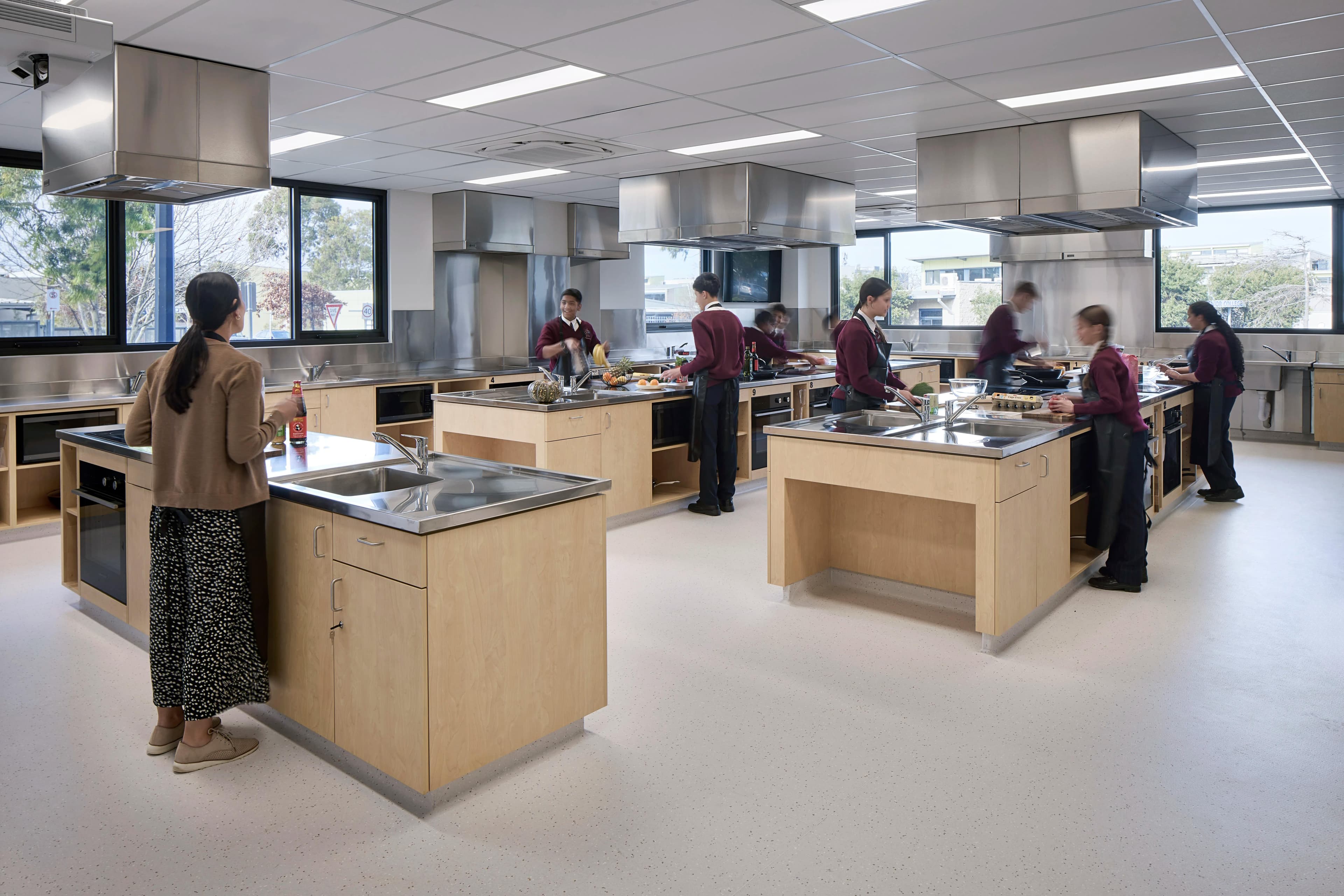 The three-storey build, which replaced the former Music, Art & Drama facility, now houses the College’s general reception, staff offices, conference rooms, and boardrooms. Across its three levels, specialised learning areas for disciplines such as Food Science & Technology, Music, and Art have been incorporated, featuring state-of-the-art facilities, such as recording studios.