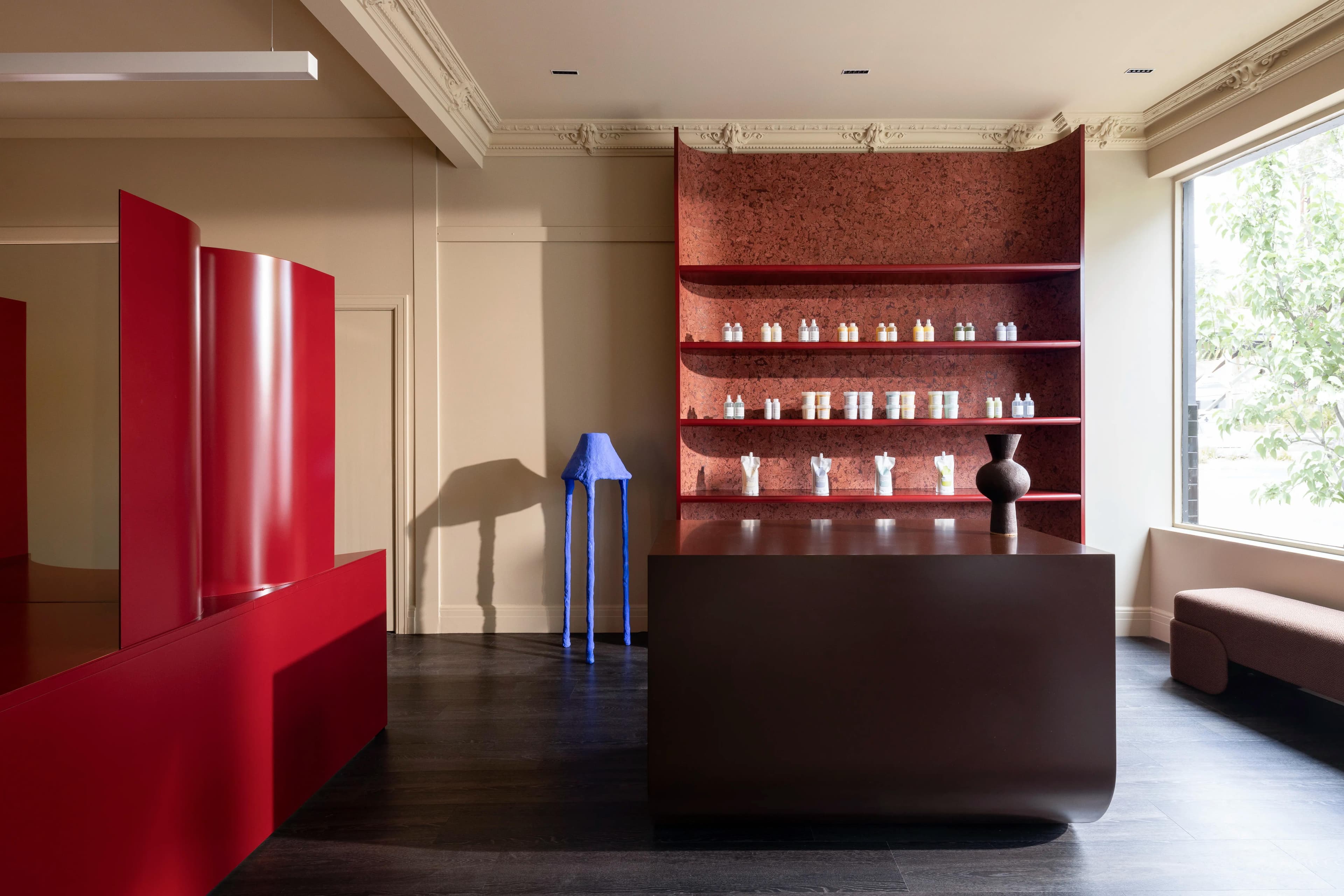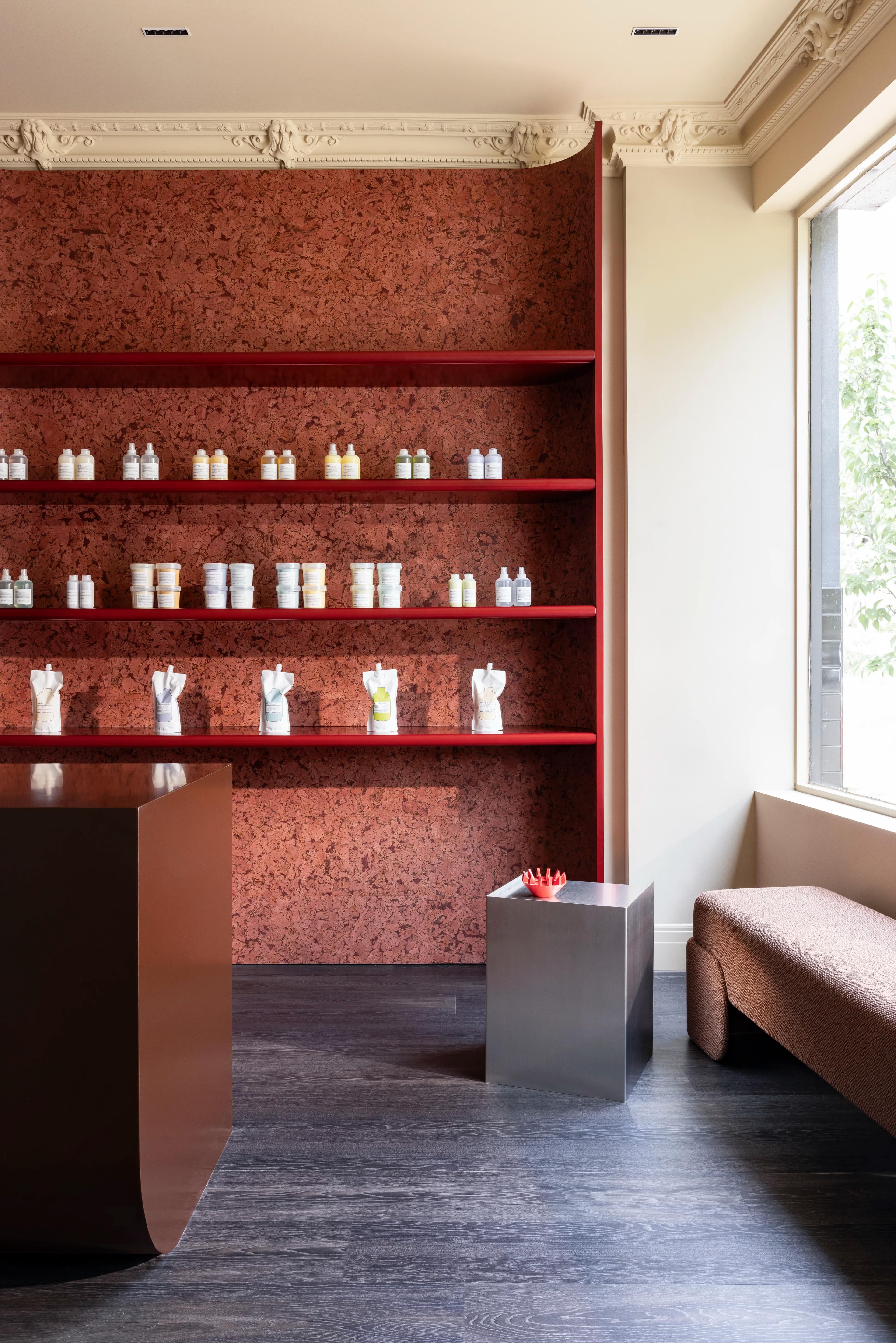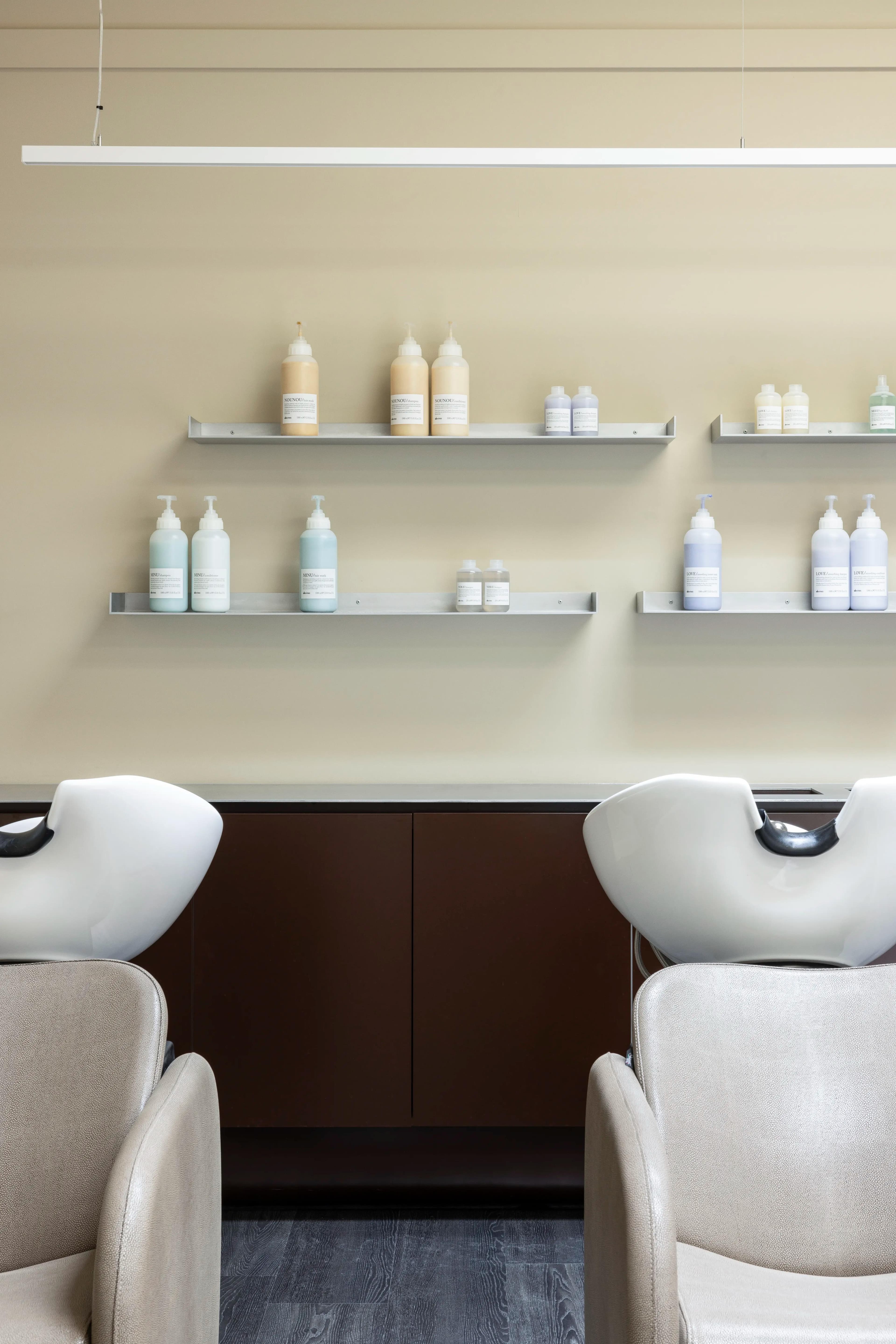 Notably, Made For’s luxurious design is complemented by Wildflower’s custom furniture and styling curation, showcased throughout, including bespoke architectural joinery. New modern lighting was incorporated to enhance functionality and set the salon’s ambiance. The existing cornices at the salon’s entry were preserved and elevated through the installation of feature display shelving.