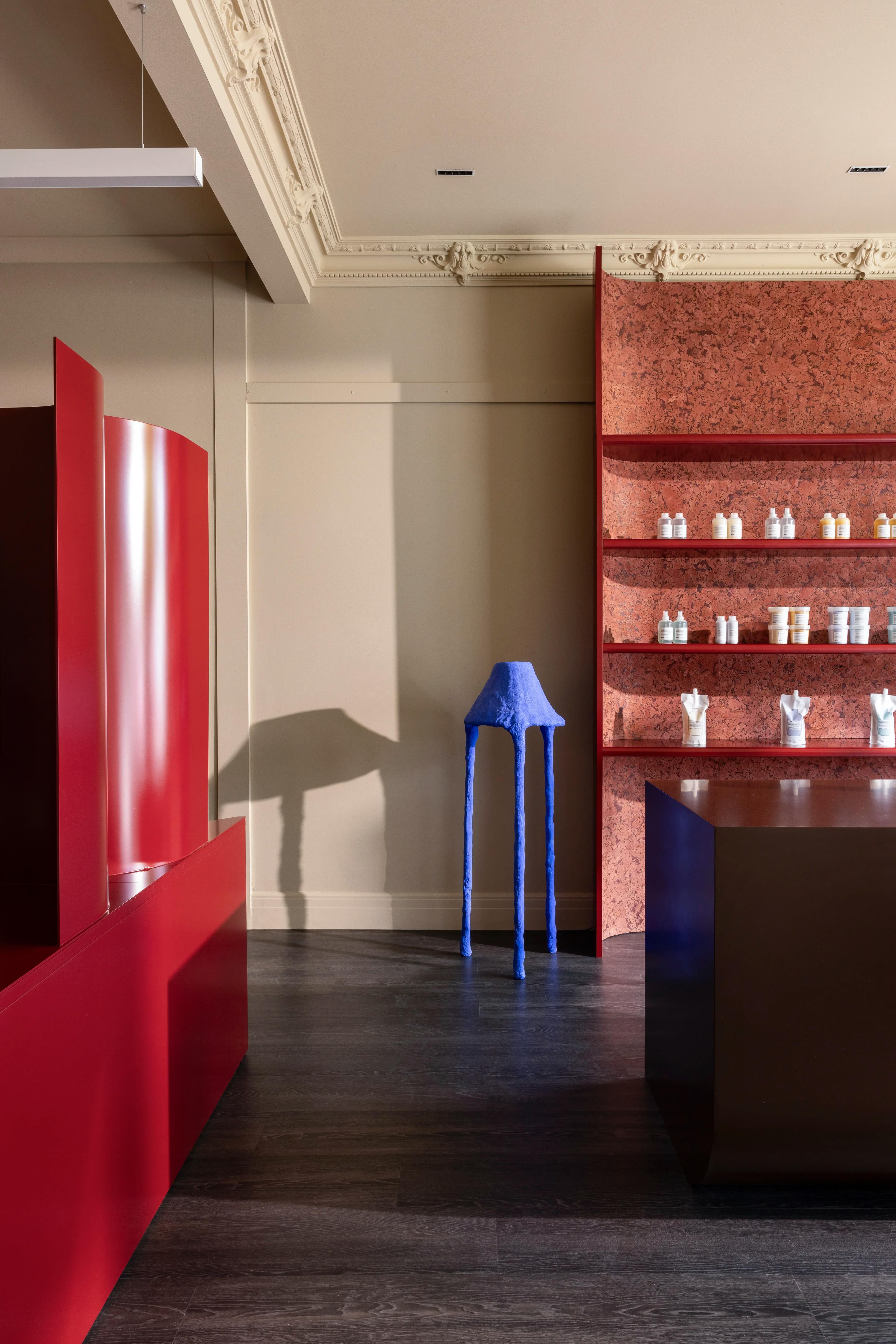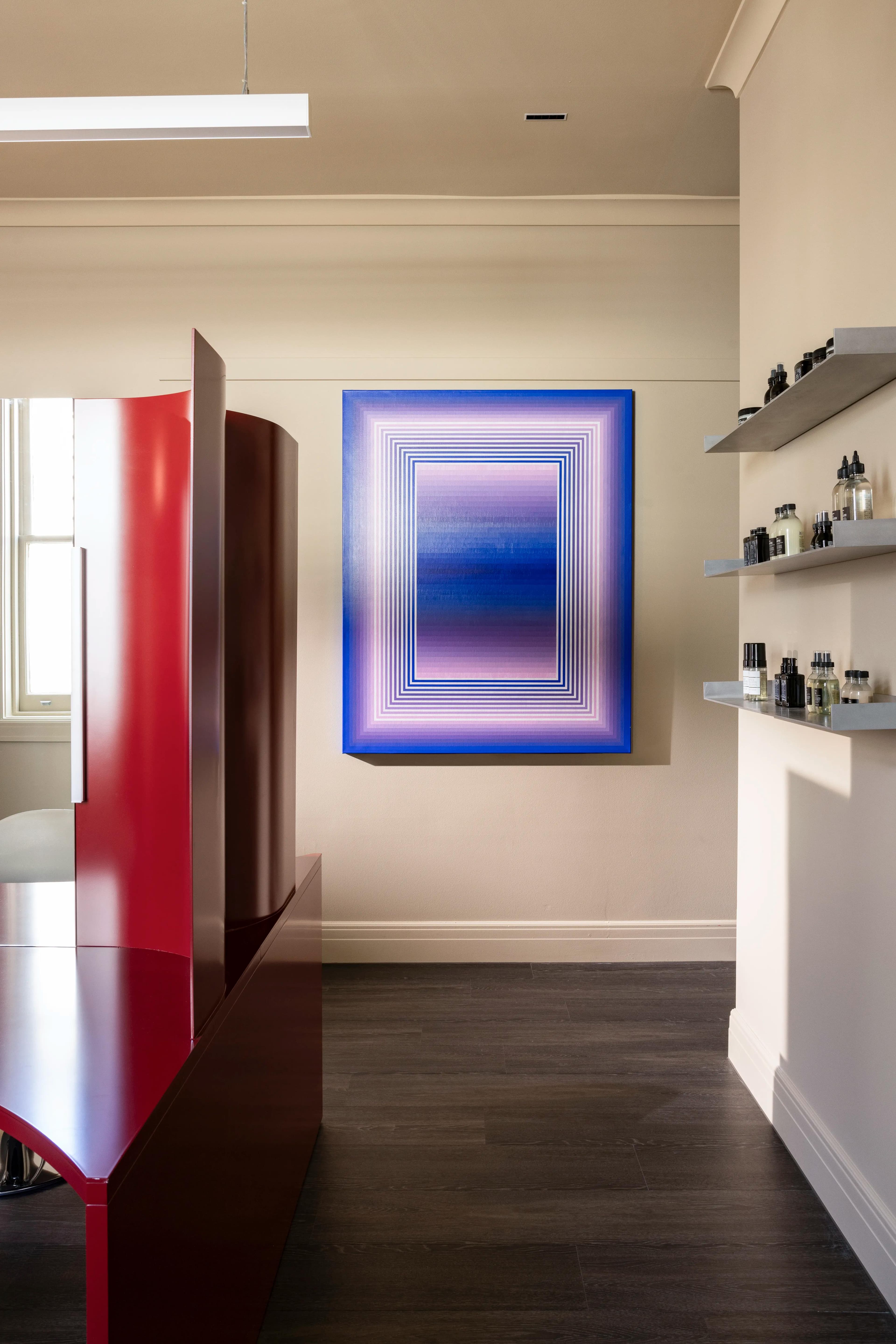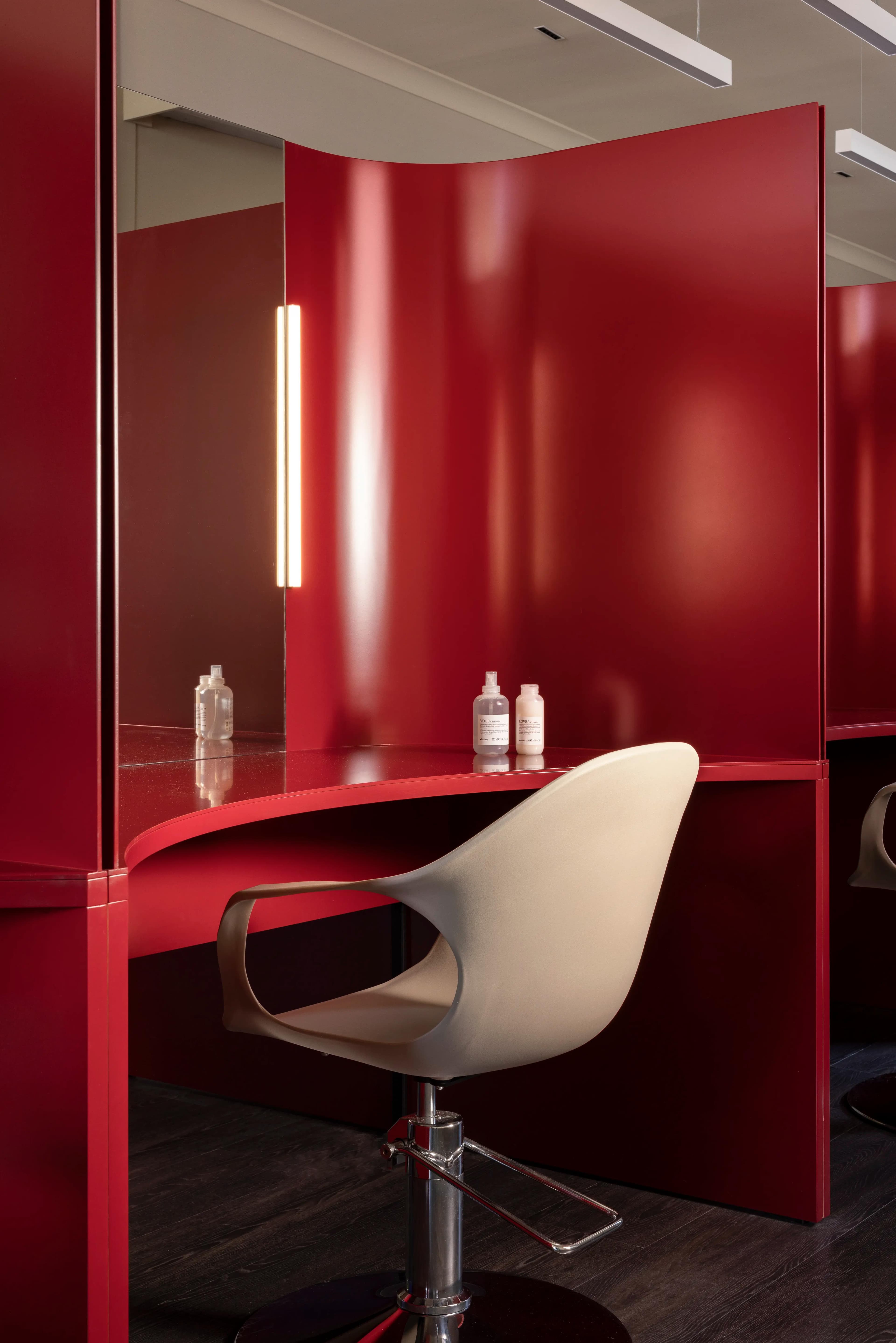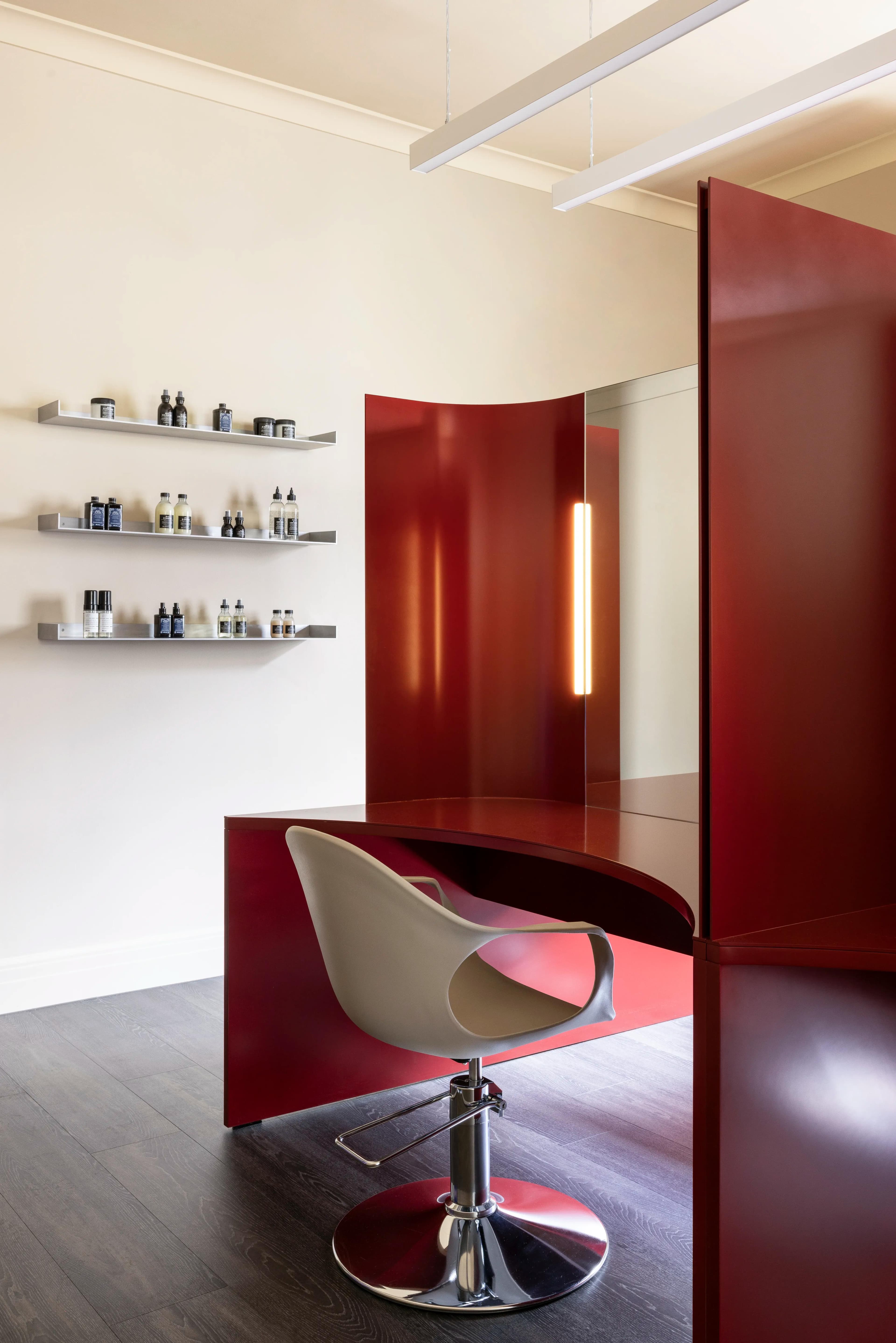 Notably, Made For’s luxurious design is complemented by Wildflower’s custom furniture and styling curation, showcased throughout, including bespoke architectural joinery. New modern lighting was incorporated to enhance functionality and set the salon’s ambiance. The existing cornices at the salon’s entry were preserved and elevated through the installation of feature display shelving.
