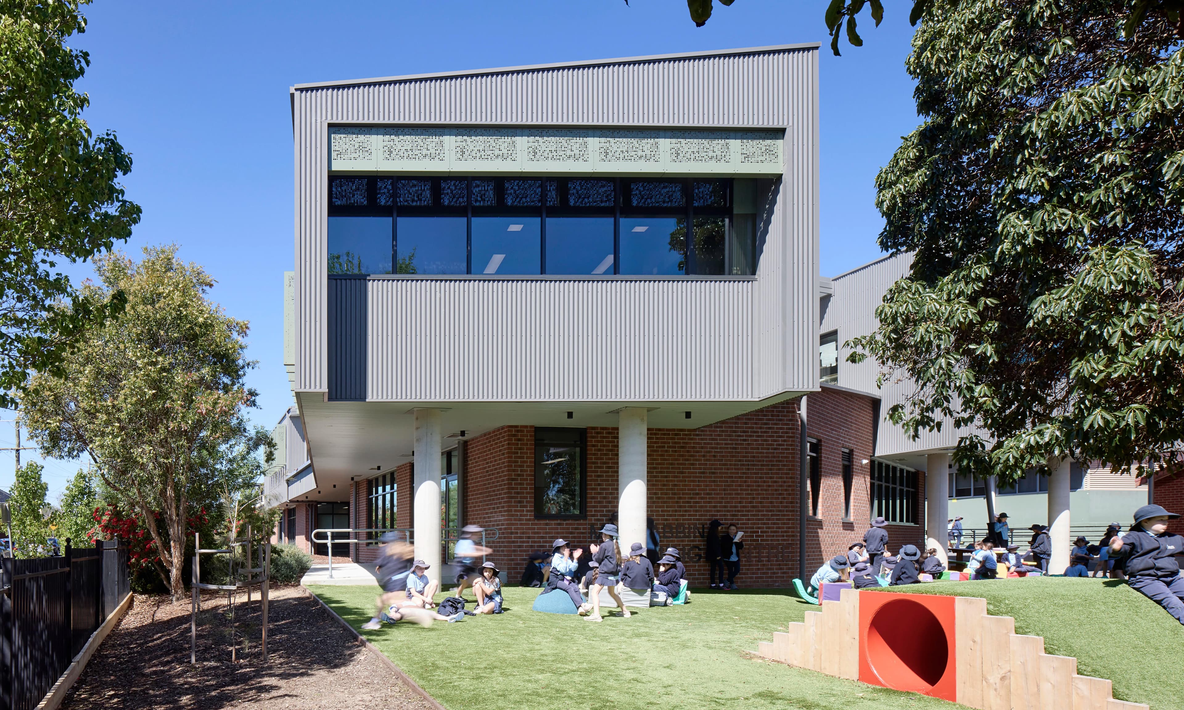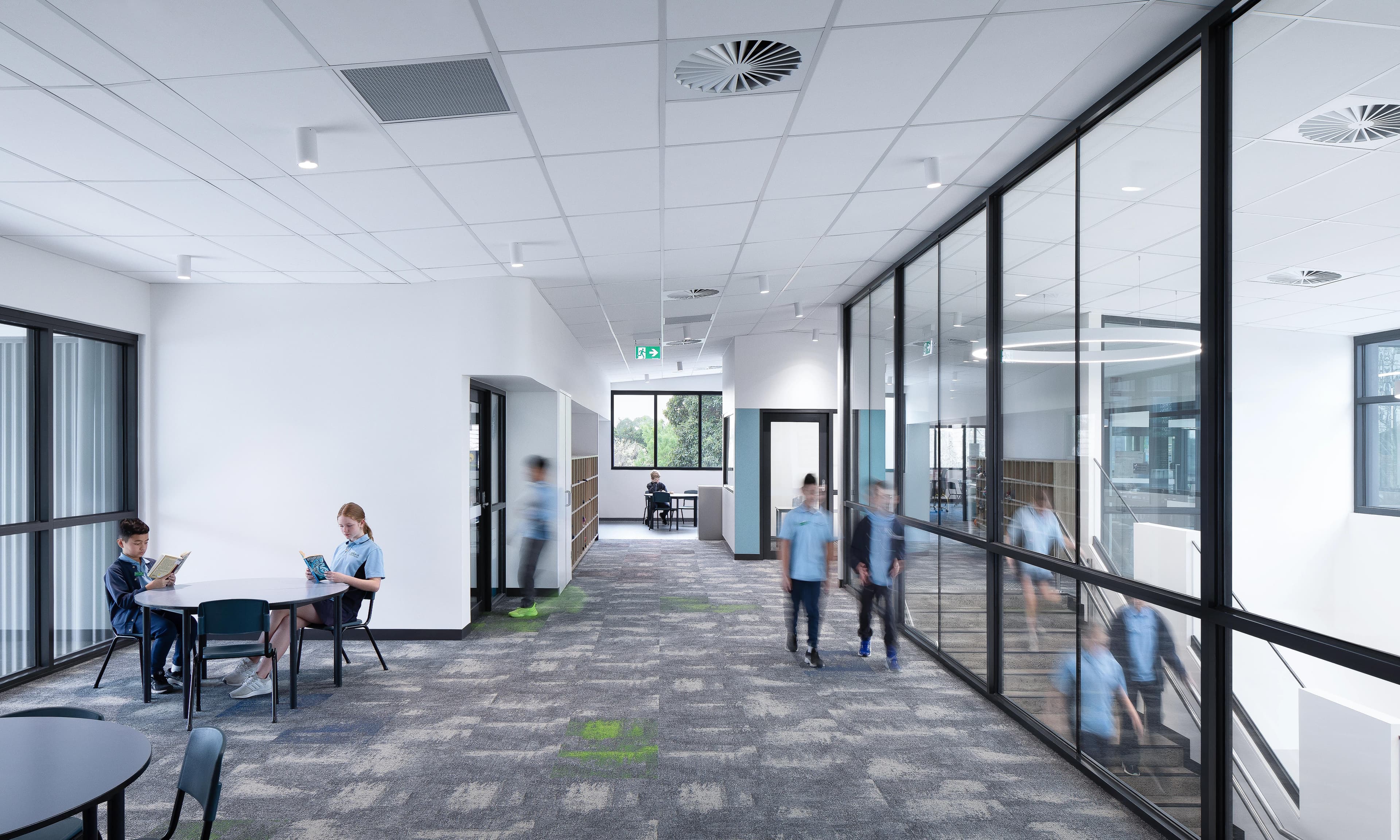 This project involves two stages. Stage one, which is now complete, saw the construction of a two-storey Learning Community Facility that houses 12 general learning areas and various collaboration spaces. The ground floor features a library, science facilities, staff work areas, and consultation spaces. Whilst meeting rooms, maker spaces, and an external terrace are included on the first level.