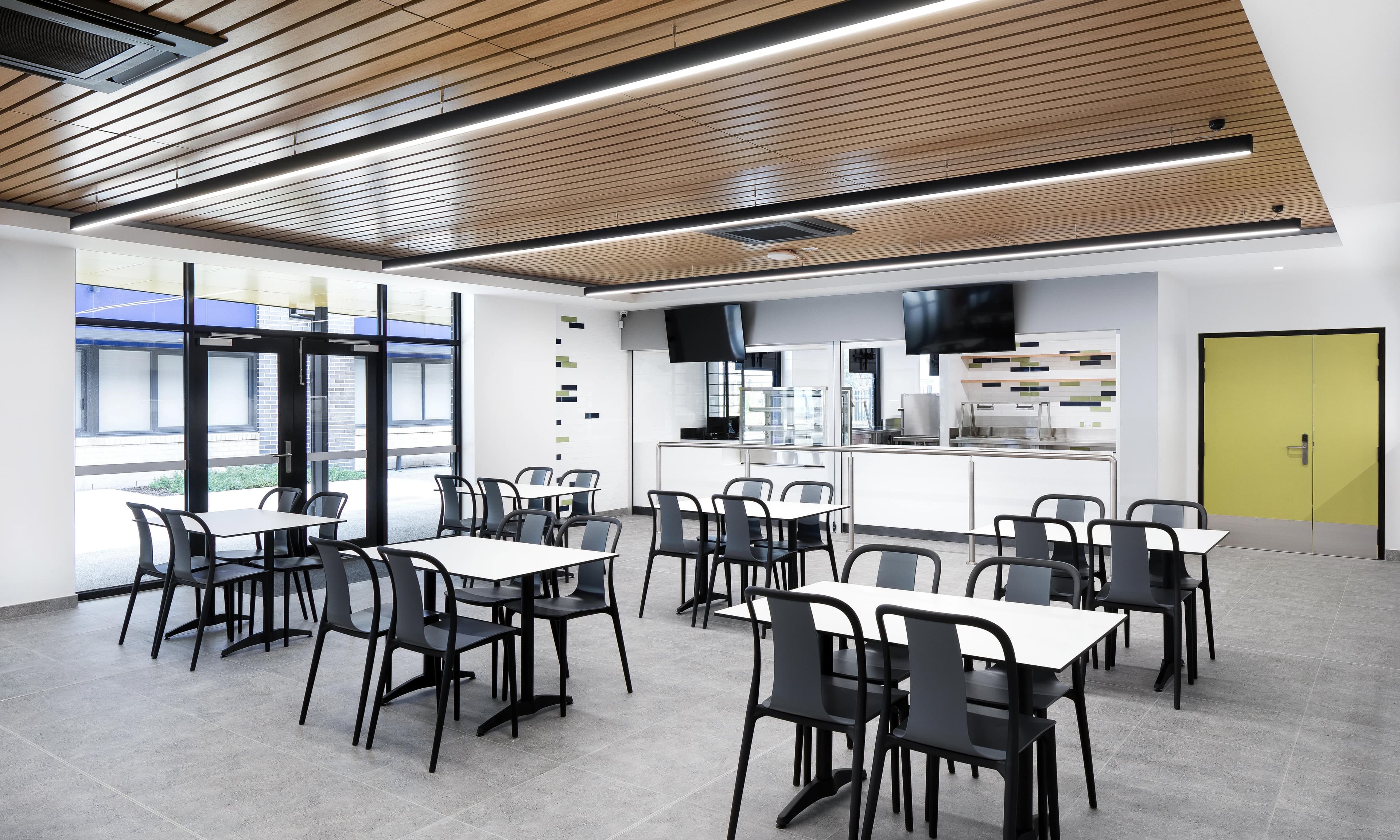 The Stage 2 works incorporated a new administration, management offices, as well as conference rooms on the ground floor. A large cafeteria and multi-purpose area, completed with associated kitchen amenities, are also housed on this level, which extends outdoors to a covered seating and servery area.