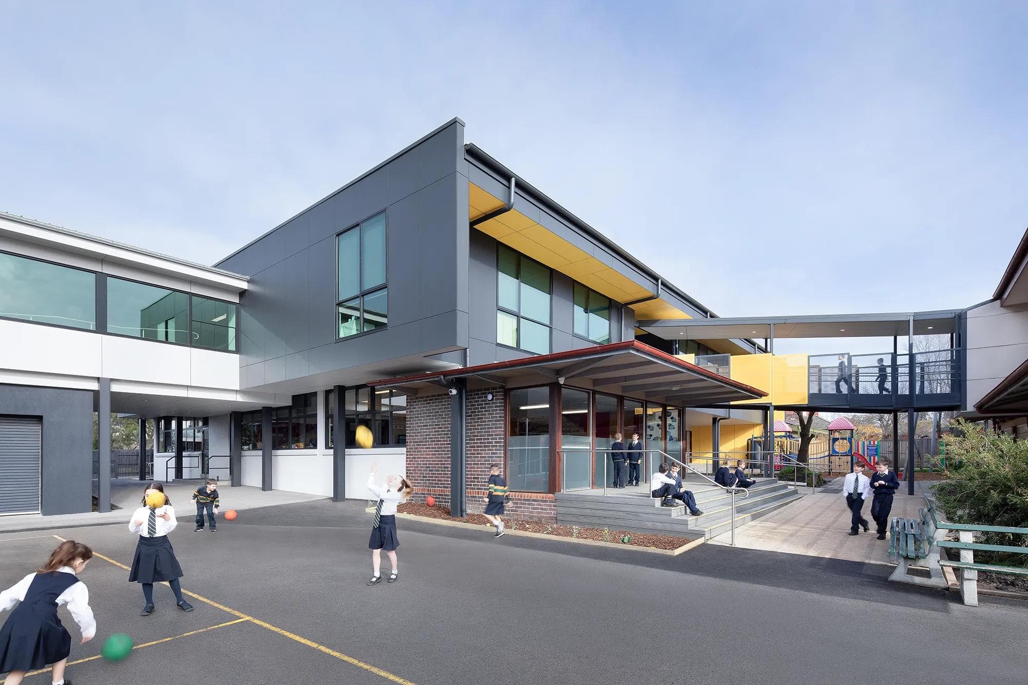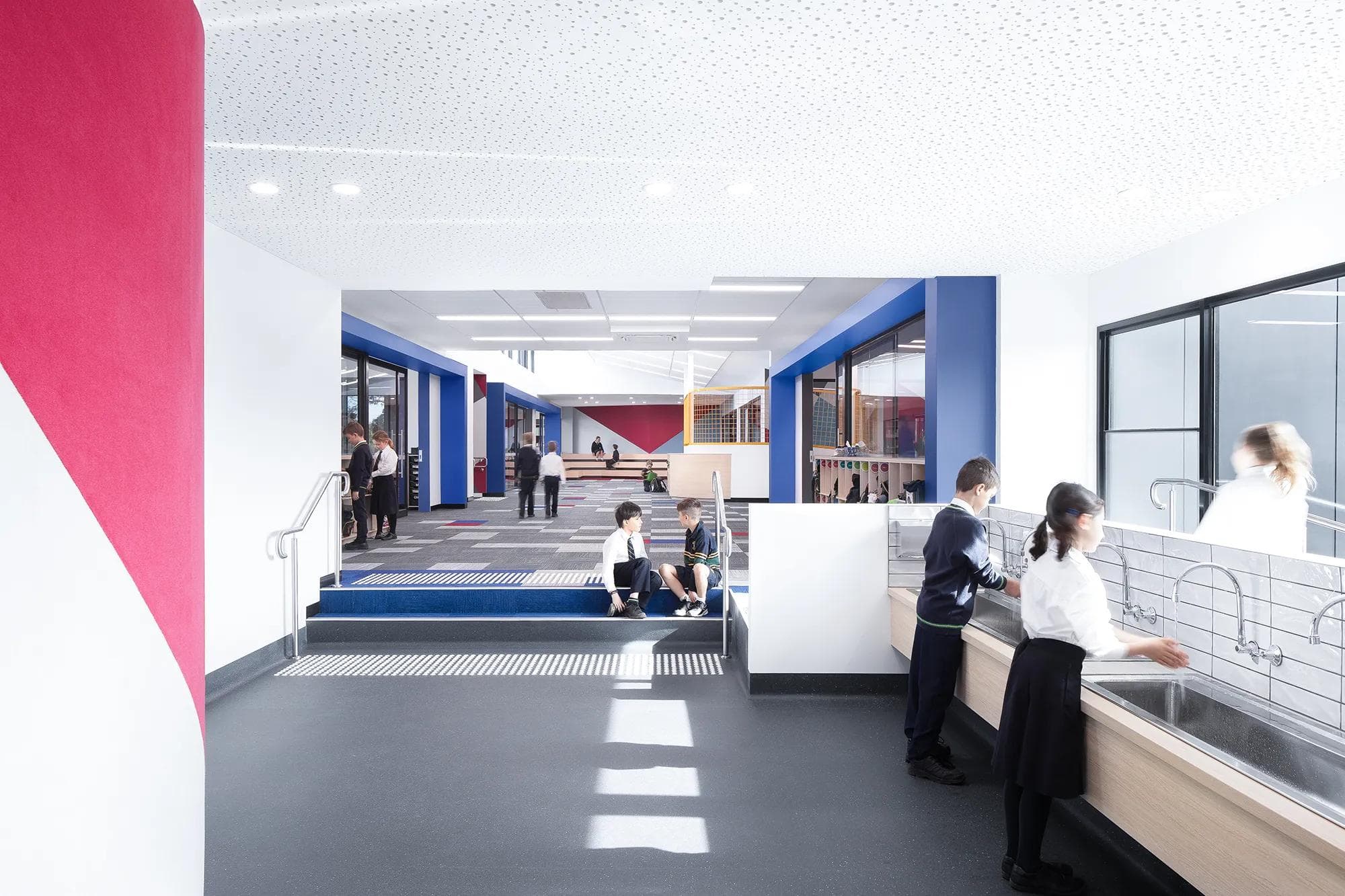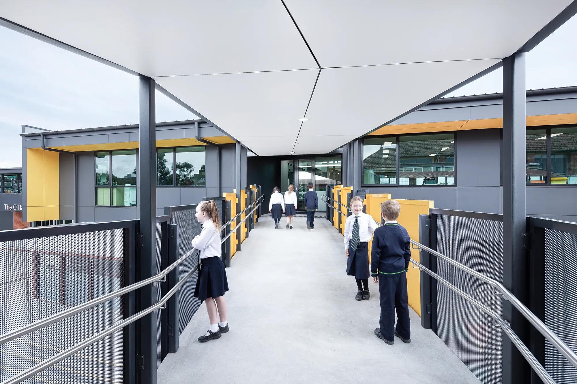 This complex integration of new build and refurbishment saw the delivery of a two-storey learning facility. Structural strengthening was utilised on the existing ground floor, to accommodate the inclusion of the first floor; which has provided six general-purpose learning areas, collaborative learning spaces, and wet areas. Two suspended pedestrian bridges were used to link the new first floor to the adjacent buildings. Works further encompassed the complete refurbishment of three existing GPLA’s and common areas on the ground floor, along with the addition of breakout spaces and a wet area.