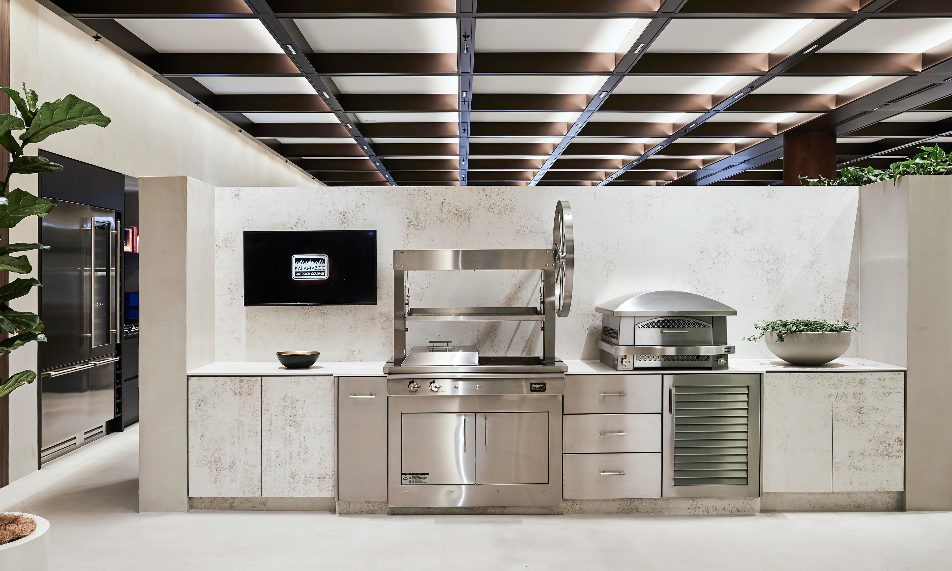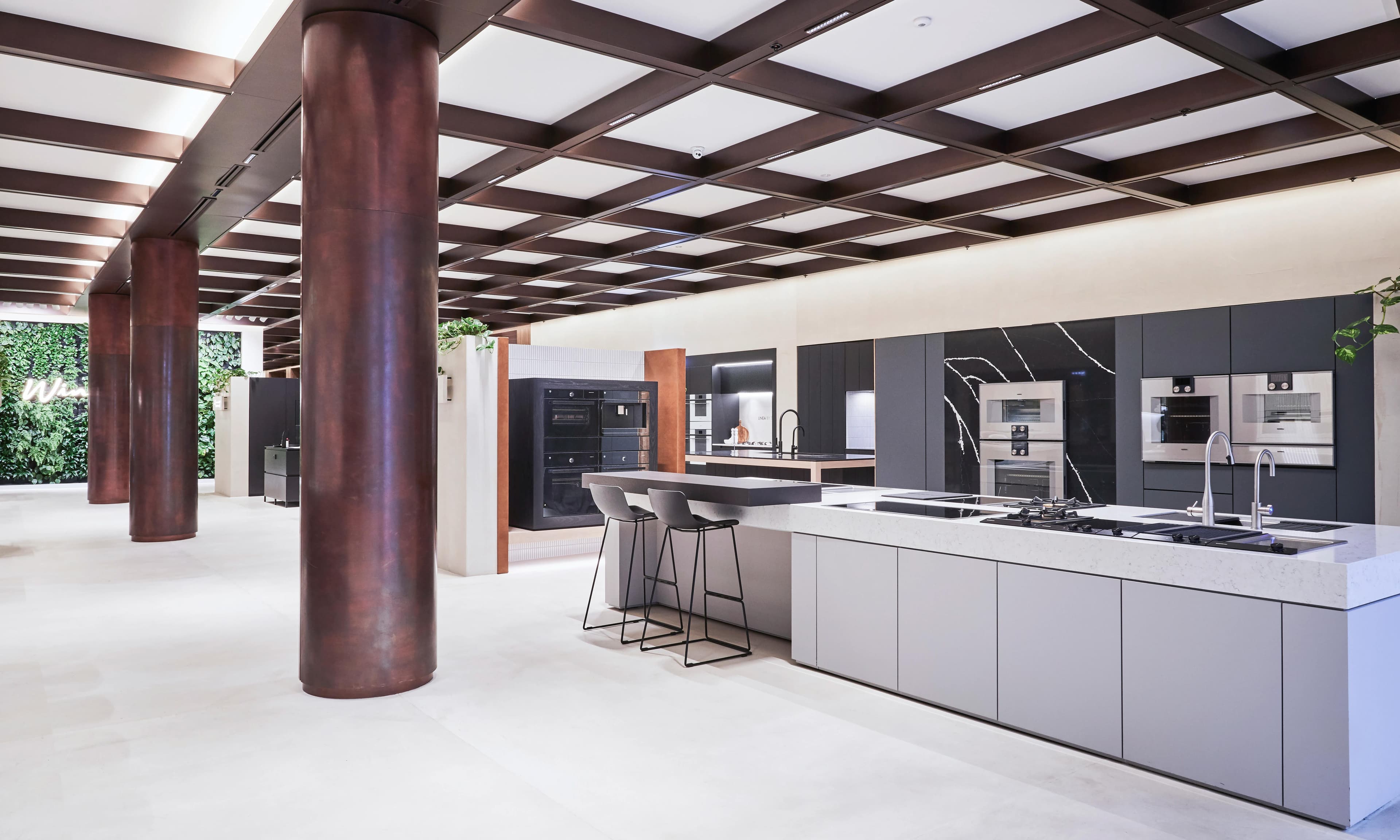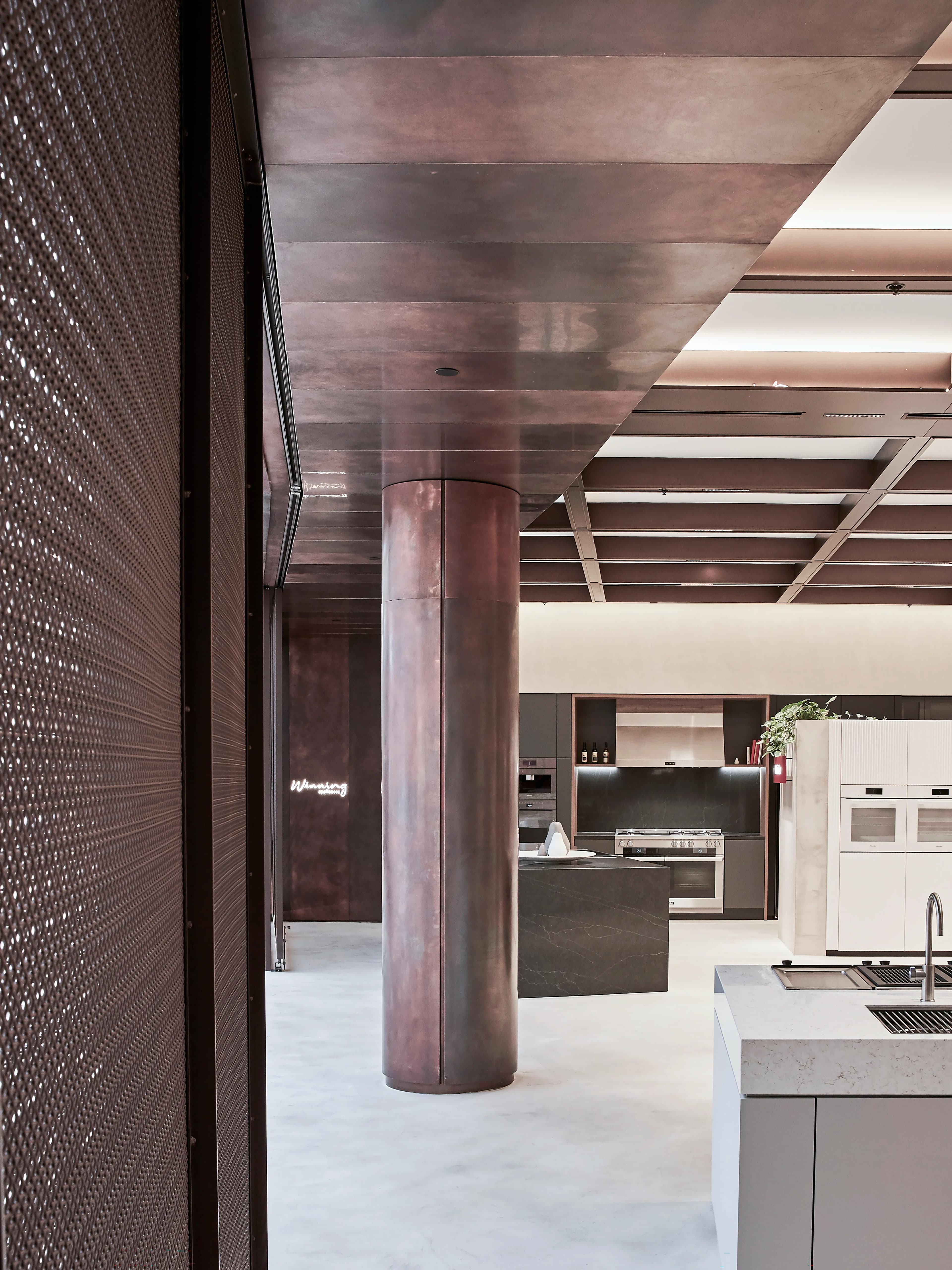 Newpol completed a 360m2 fit-out of the Winning Appliances tenancy at Chadstone Shopping Centre. This involved the management of more than ten individual manufacturers who installed their own display stations, all within a tight ten-week program. Various design elements were featured throughout, including X Bond Polished Render Stone for the floor and walls, Copper Cladding to the front facade, Fabricated Steel Mesh sliding doors at the Entrance, a Green Wall with irrigation, and a Fabricated Aluminum Ceiling Grid.